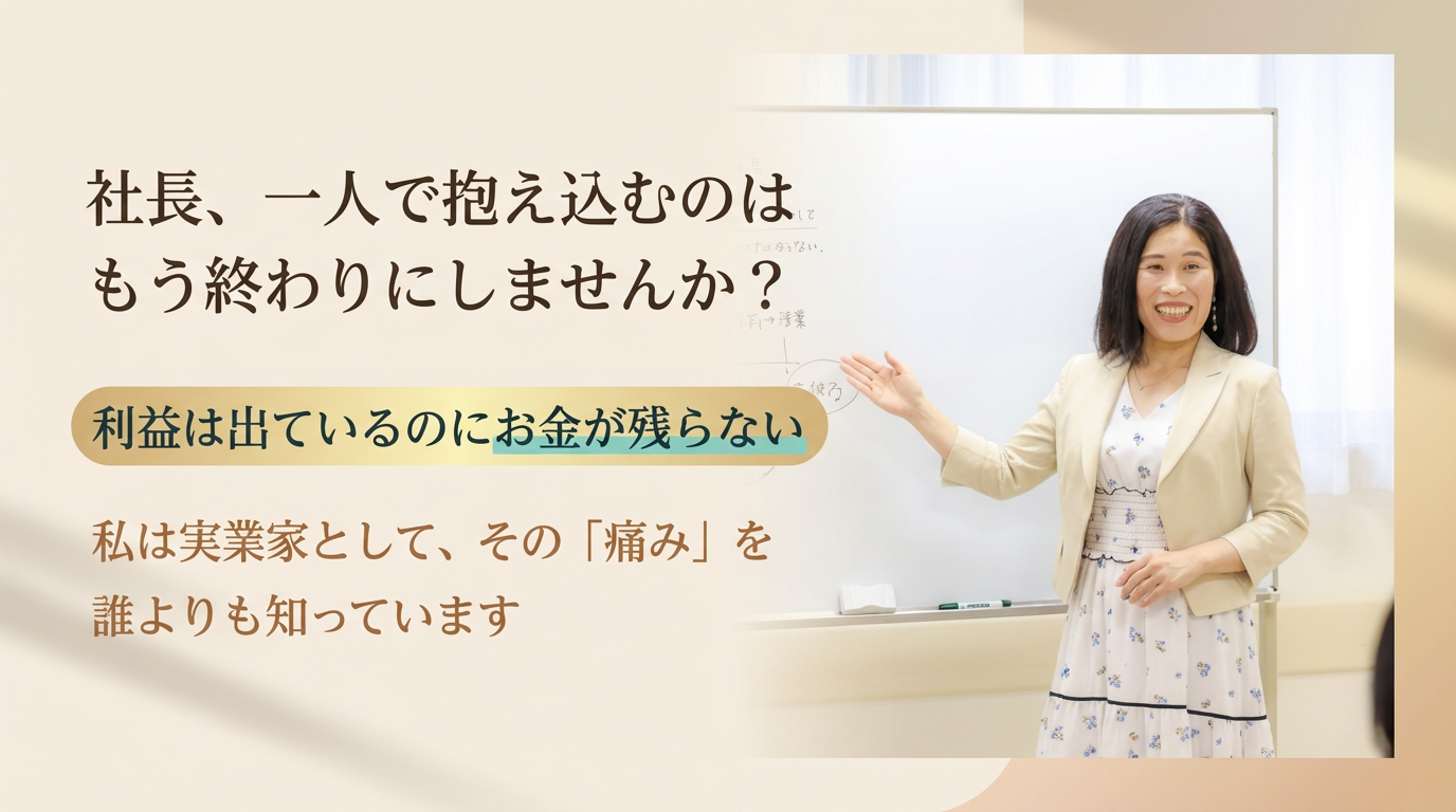 ・価値: 税理士が教えてくれない「会社を大きくするためのお金の残し方」を習得し、自信を持って投資や拡大の決断ができるようになります。